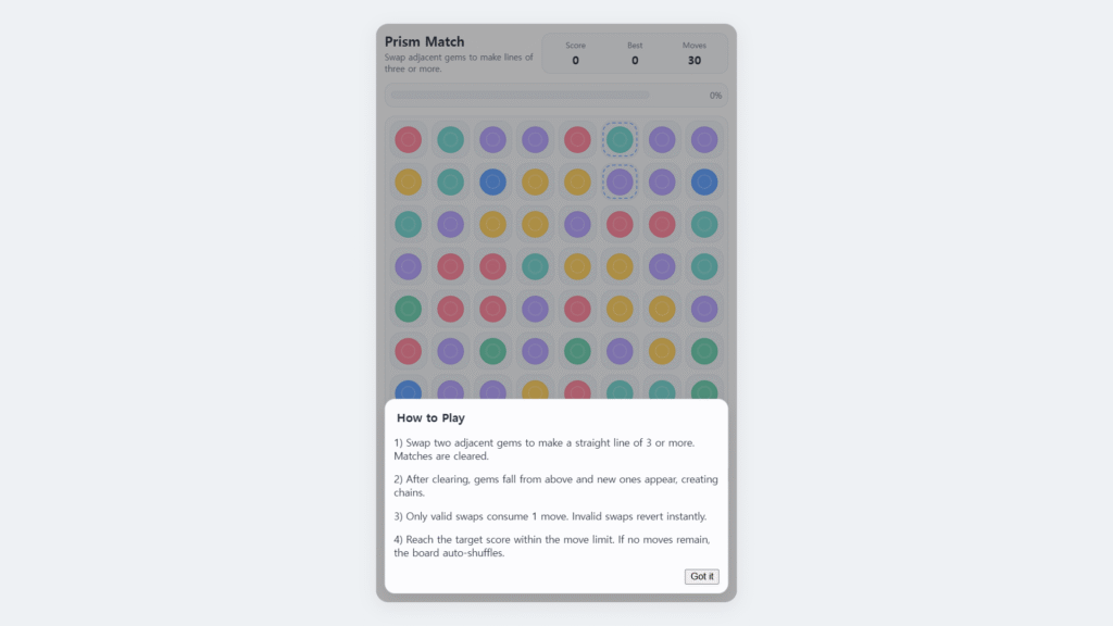 • Smart hints, auto‑shuffle, single‑step undo, and autosave via localStorage.